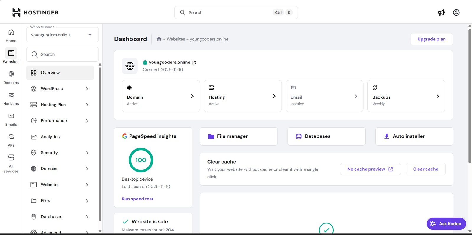 HOSTINGER DASHBOARD: